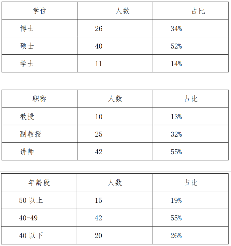 截止目前,示范中心共有教师77 名,其中高级职称35名,占比45%。博士26名,占比34%。
