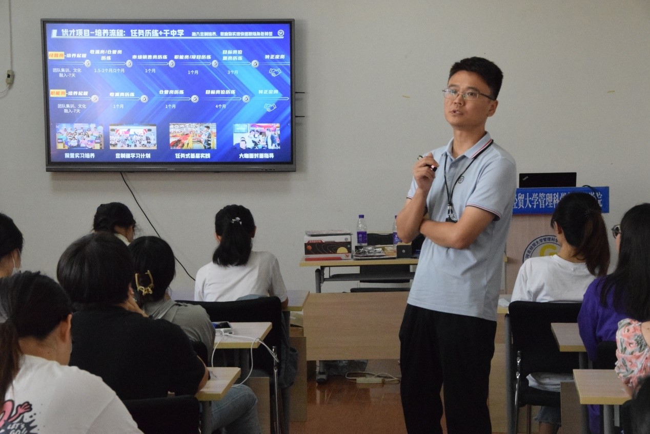 2023年9月15日下午,公司在一教408教室举办顺丰集团2024届毕业生校园招聘会。公司负责人贺嘉等一行三人来校招聘,管科公司50余名应届毕业生参加了宣讲会。