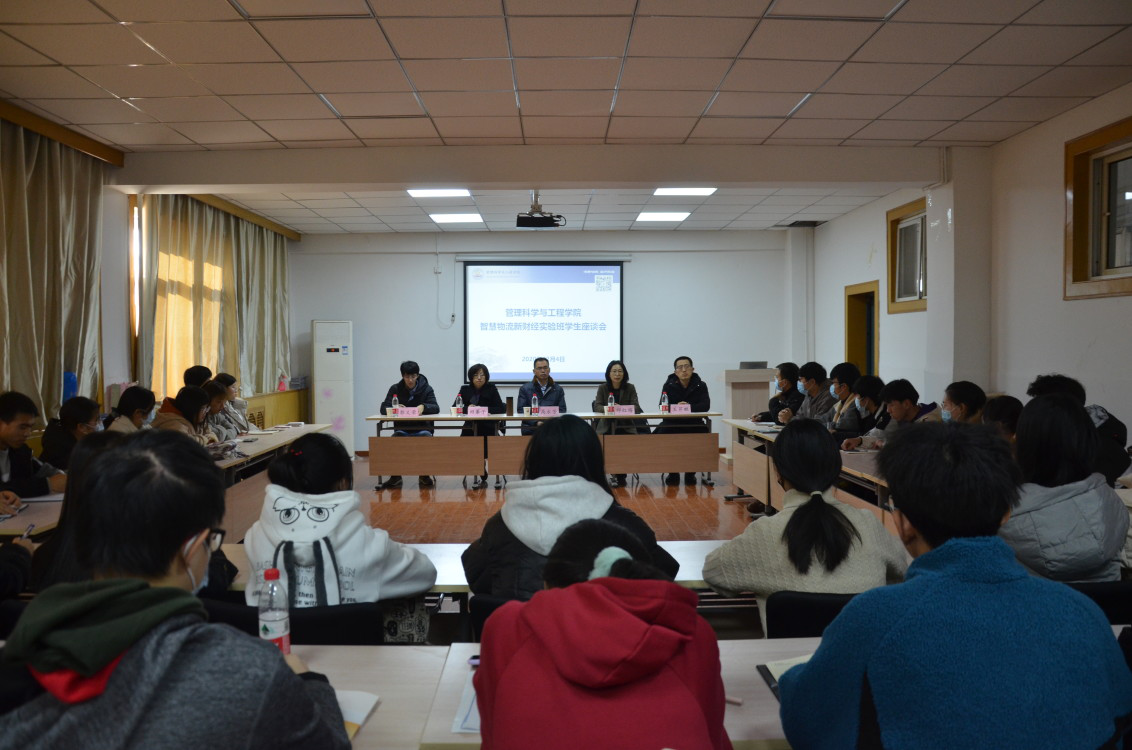 12月4日下午,管理科学与工程公司在第一教学楼408教室召开智慧物流新财经实验班员工座谈会,公司党委书记高永芳、经理祁红梅、党委副书记田蓁子、经理助理王芹鹏、物流教研室系主任郭义荣出席,会议由党委副书记田蓁子主持,智慧物流新财经实验班40名员工代表参加。
