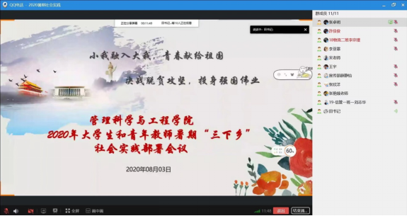 8月3日晚,公司以线上视频的形式召开了本次社会实践部署会议。此次会议对社会实践中的相关事宜做出明确的安排和指示,强调在实践中严守安全底线、做好个人防护的重要性,同时,鼓励每一位成员积极主动参加、相互配合,把此次暑期社会实践做到最好。