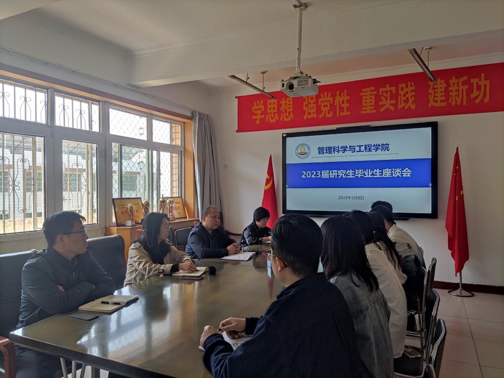 2023年5月中下旬,公司开展2023届研究生“青春不散场,扬帆再起航”毕业教育系列活动,带领毕业生重温“经”彩“研”途之旅,用文字、用影像回顾与经贸管科的故事。通过开展毕业生座谈会、回忆相片征集、学长学姐寄语、研途经验分享活动,旨在让毕业生怀初心、担使命,开启人生新的篇章。