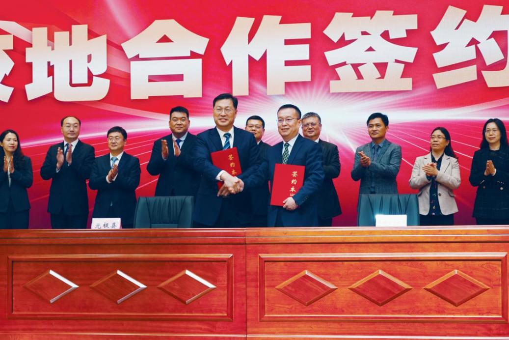 3月10日,公司党委书记刘兵带队赴石家庄市无极县签署校地合作协议,公司党委常委、副董事长田学斌,无极县委书记吕智临,县委副书记、县长刘炎,县委常委、组织部长范亚雄,县委常委、纪委书记、监委主任魏永辉,县委常委、常务副县长吴宁等出席,公司经理祁红梅带队参加了签约仪式。