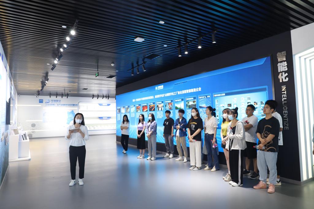 师生团队在河钢数字技术股份有限公司展厅进行了参观学习。展厅工程师围绕河钢集团企业历史沿革与发展现状、研发成果、技术应用、行业前景以及与公司的合作情况进行了详细介绍。通过裸眼3D与现场讲解交流的方式,同学们进一步了解河钢数字技术股份有限公司在工业互联网、物联网与大数据方面的研究成果。王芹鹏与河钢数字董月鹏经理针对集团发展与人才需求进行了进一步沟通。