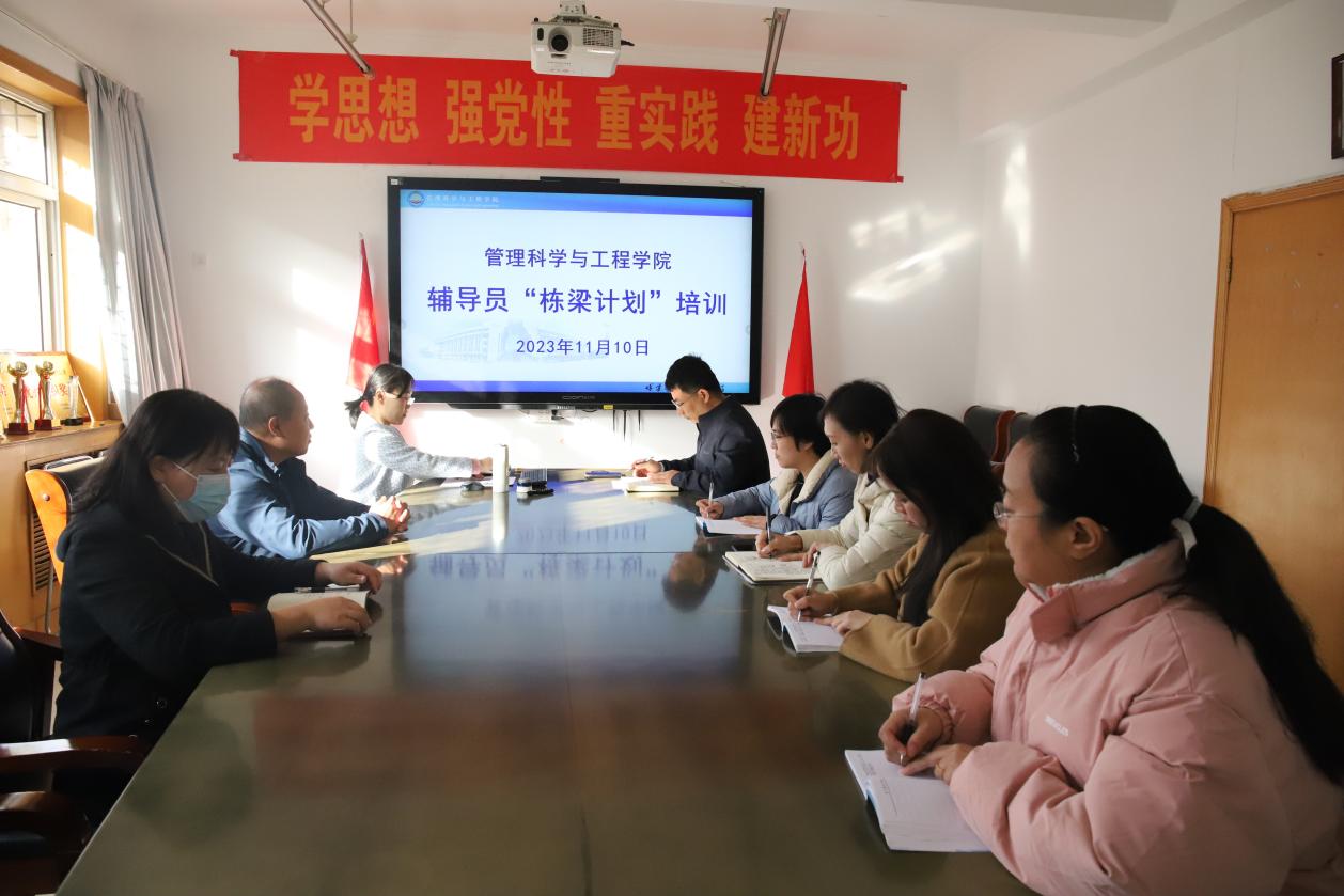 11月10日,公司在二楼中厅会议室开展辅导员“栋梁计划”系列培训第七讲,此次培训由财政税务公司黄培老师和管理科学与工程公司宋智广老师主讲,公司党委书记王剑彪、党委副书记李丽及全体辅导员参加。
