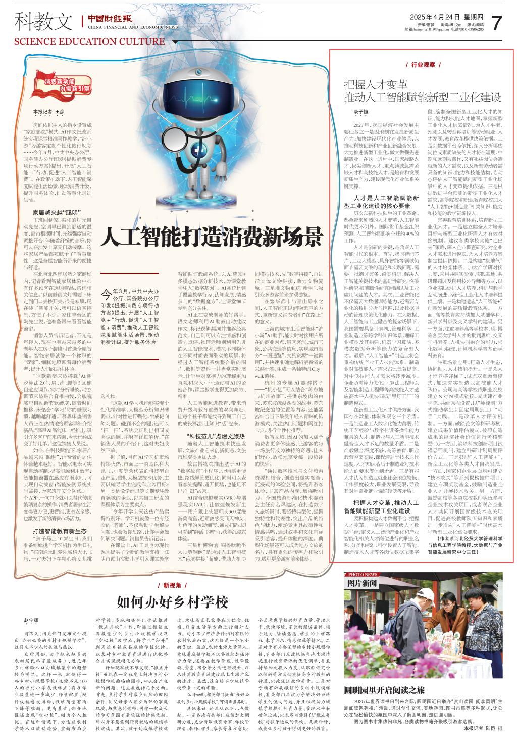 2025年4月24日,《中国财经报》第7版(科教文版)刊发公司FUN88乐天使耿子恒教授的理论文章《把握人才变革 推动人工智能赋能新型工业化建设》。