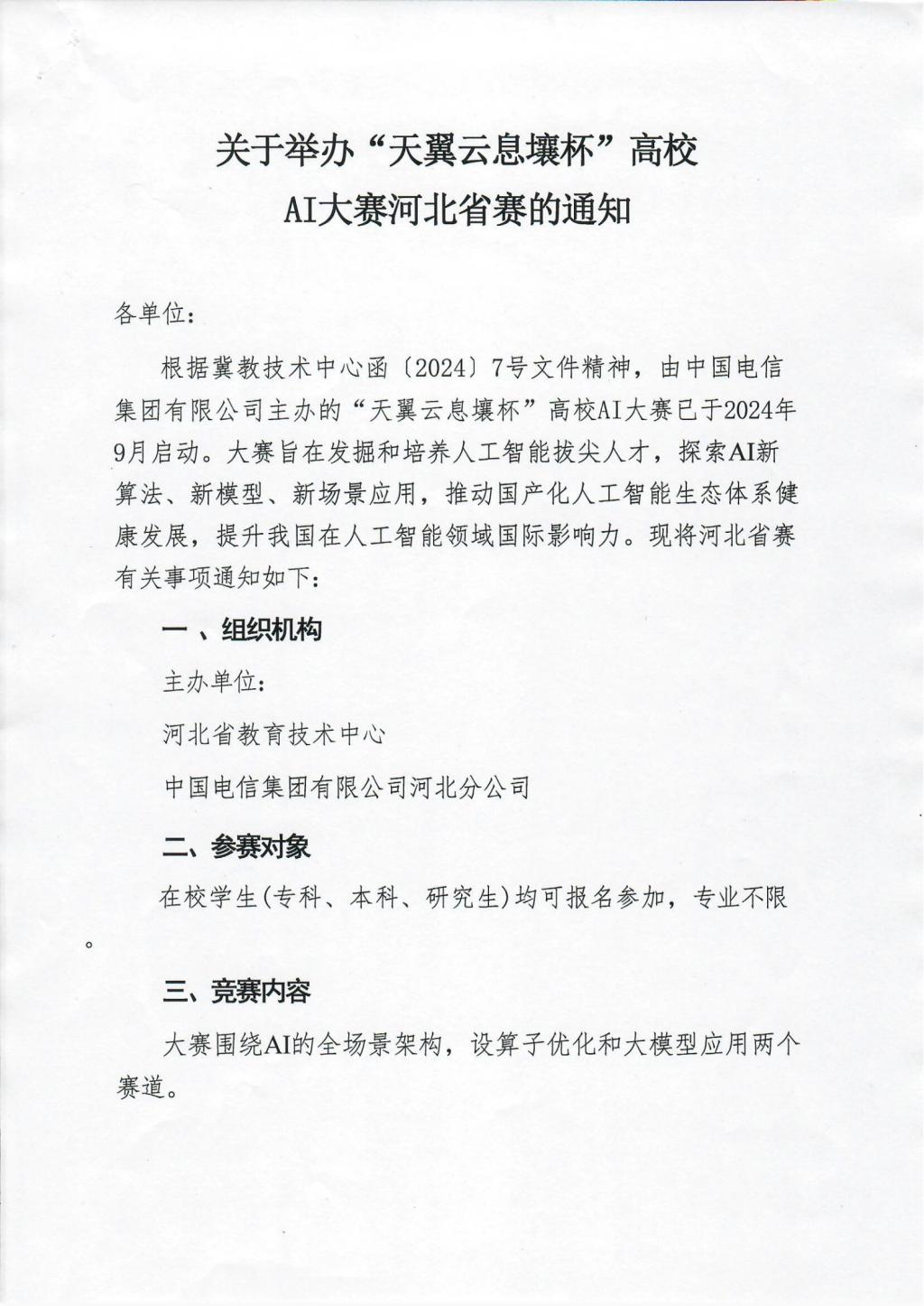 关于举办“天翼云息壤杯”高校AI+大赛河北省赛的通知.pdf
