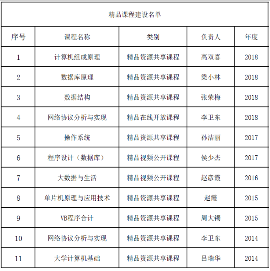 精品课程建设名单