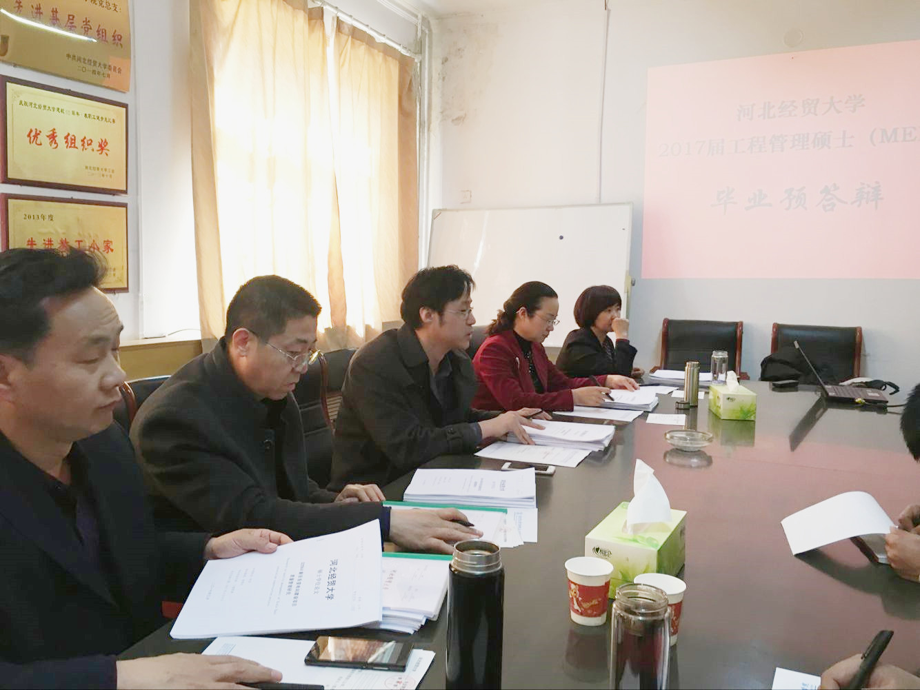 3月9日下午,公司在三办134室举行 2017届工程管理硕士毕业生学位论文预答辩会。河北省统计局副局长王素君应邀担任本次答辩委员会主席,经理武彦斌及导师李伟红、樊广佺、唐振龙担任答辩委员。答辩会由武彦斌主持。