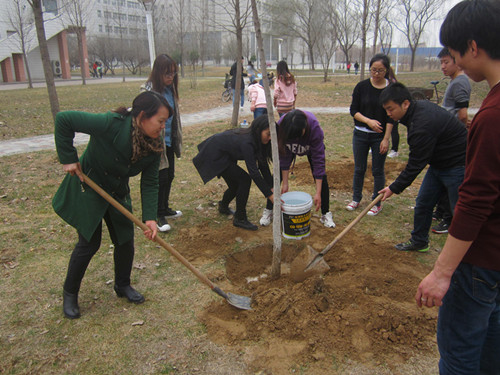 为响应校团委的号召,增进同学情谊,增强班级凝聚力,打造和谐先进的班集体,2014年3月17日下午,管理科学与工程公司2011级信管1班在学雷锋月,于C教后面的园林区举办了以植树为主题的团日活动。