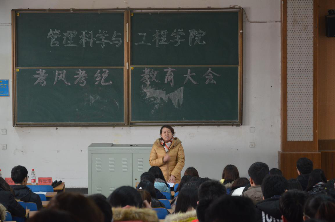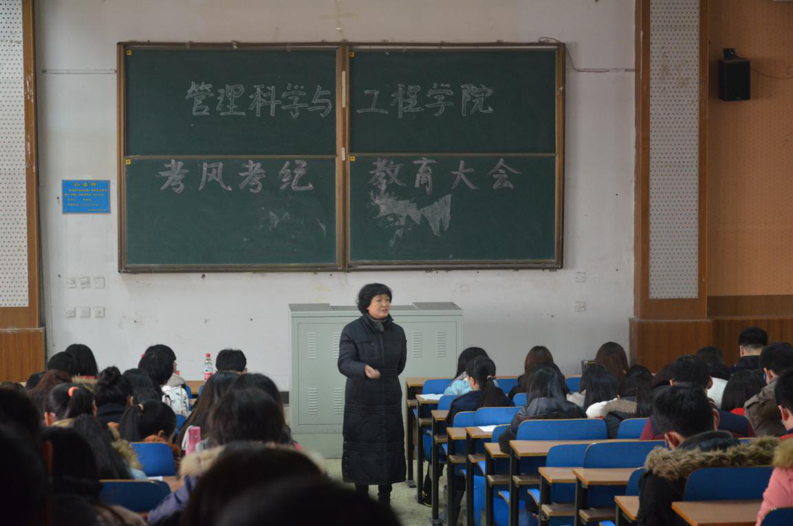 1月4日,管理科学与工程公司在第三教学楼C225教室举办考风考纪教育大会。公司党委副书记张晓军、副经理许世瑛及全体辅导员老师出席,公司全体员工参加。
