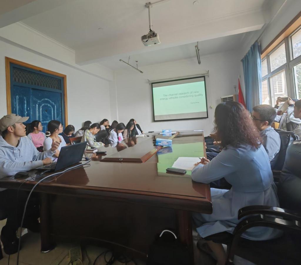 王磊介绍了手绘草图在现代触屏设备和绘画程序中的广泛应用,讲解了如何利用深度学习技术有效理解和处理手绘草图,提出了使用协作学习模式的双模态草图识别方法。为了避免语义细节丢失,提出了基于线段自注意力的草图语义分割方法;最后,针对目前存在方法依赖笔画序列信息问题,提出了基于条件生成对抗和平均教师模型的语义分割方法。王泽鹏根据现有新能源汽车的发展困境和现有的渠道结构,提出新能源汽车销售渠道优化升级的办法,利用经济学模型对需求和收益进行刻画,对比升级前后的收益大小,得出不同情境下的渠道选择的最优结果。同时,考虑质量外生和质量内生的场景。对比不同场景下新能源汽车渠道升级对消费者剩余和社会福利的影响。