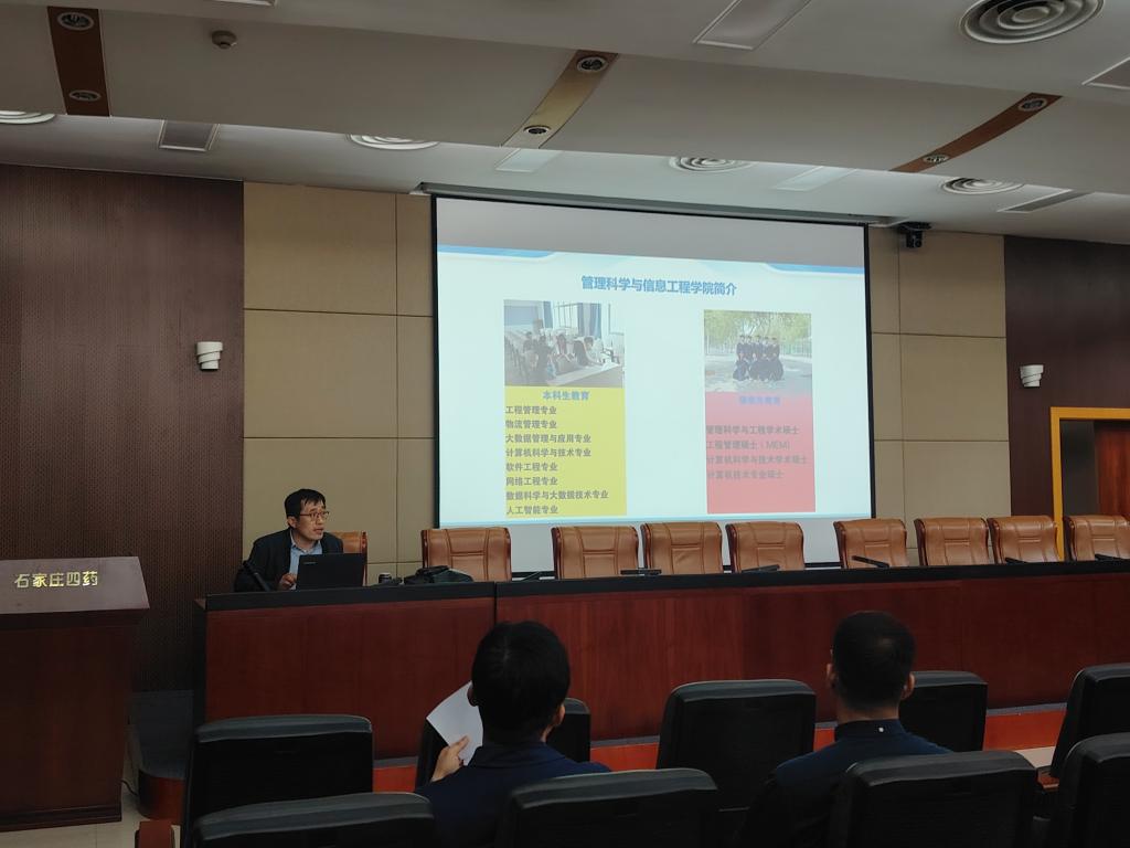 10月12日,公司赴石家庄四药集团开展2025年MEM招生宣讲活动,副经理王芹鹏、学科秘书曹洋参加。